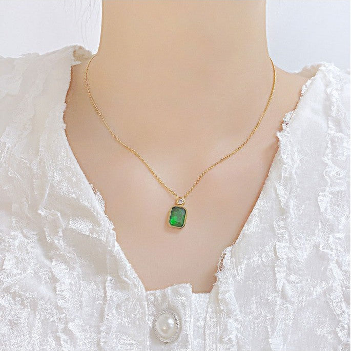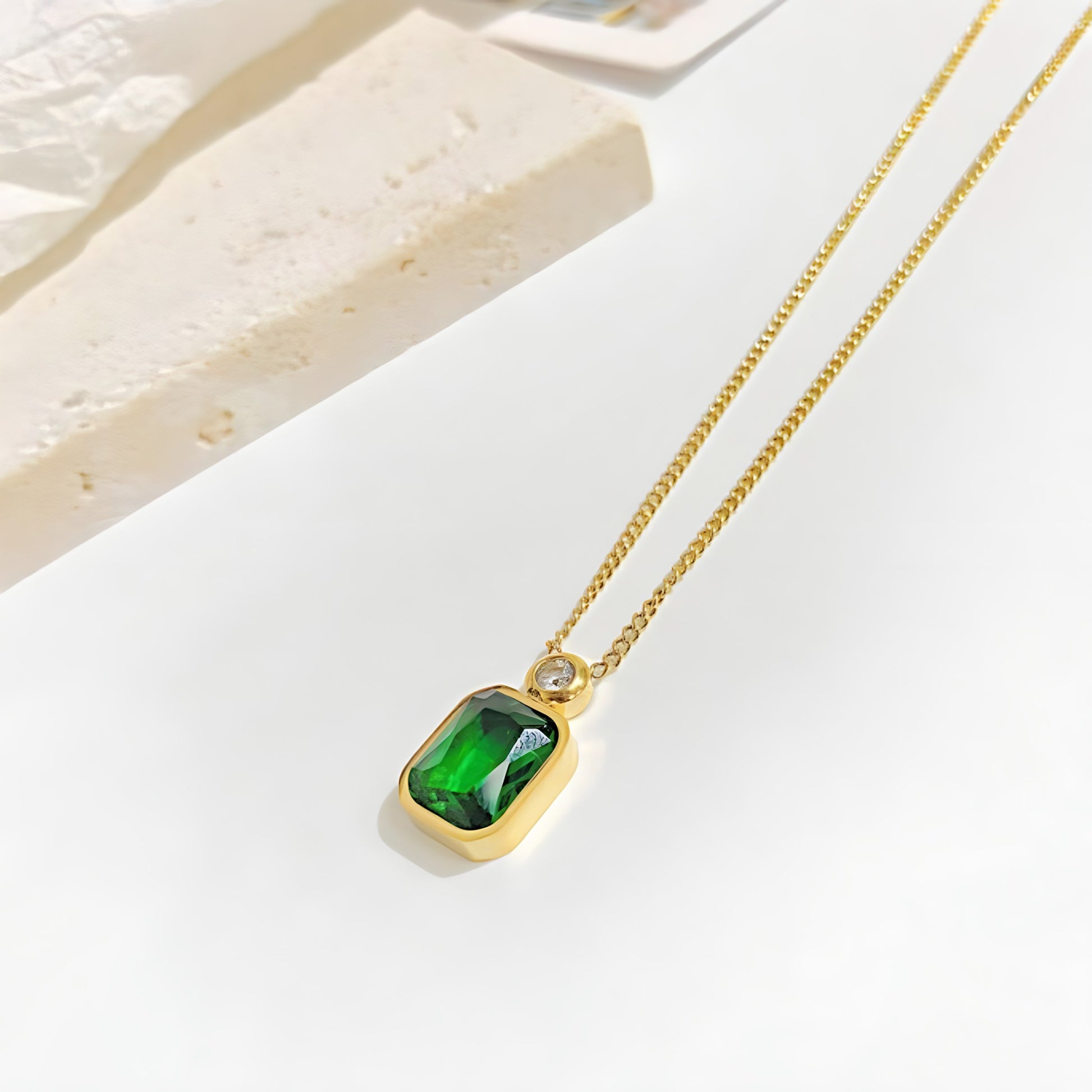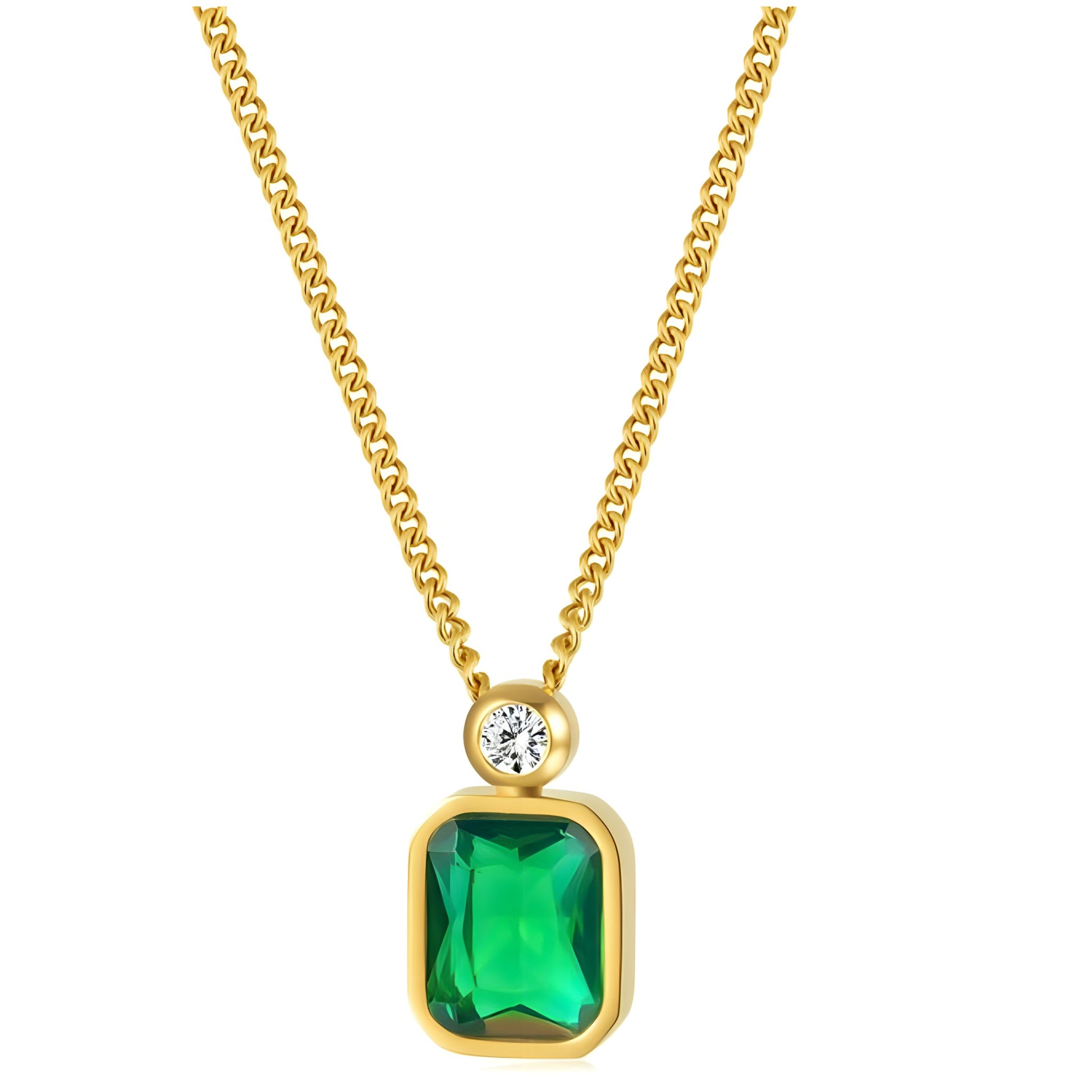 Collier Élégance Émeraude Chaîne Plaquée Or avec Pendentif en Cristal Vert - Étanche et Hypoallergénique - BWCL163