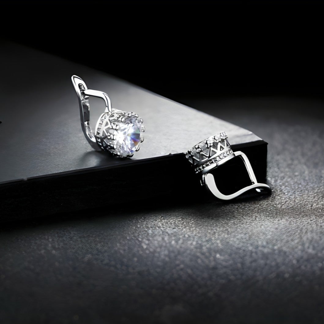 Sparkling 18K White Gold Plated Earrings with Synthetic Diamonds - BWBO130